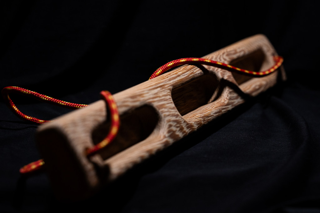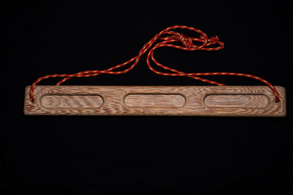 Kőris hangboard, három azonos vájattal, a két szélső két kezes, míg a középső egykezes lógáshoz.