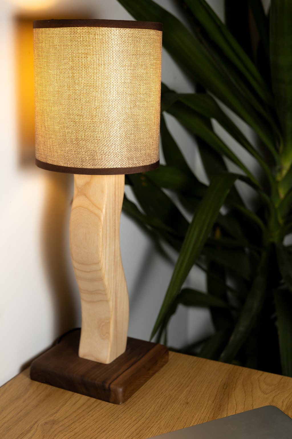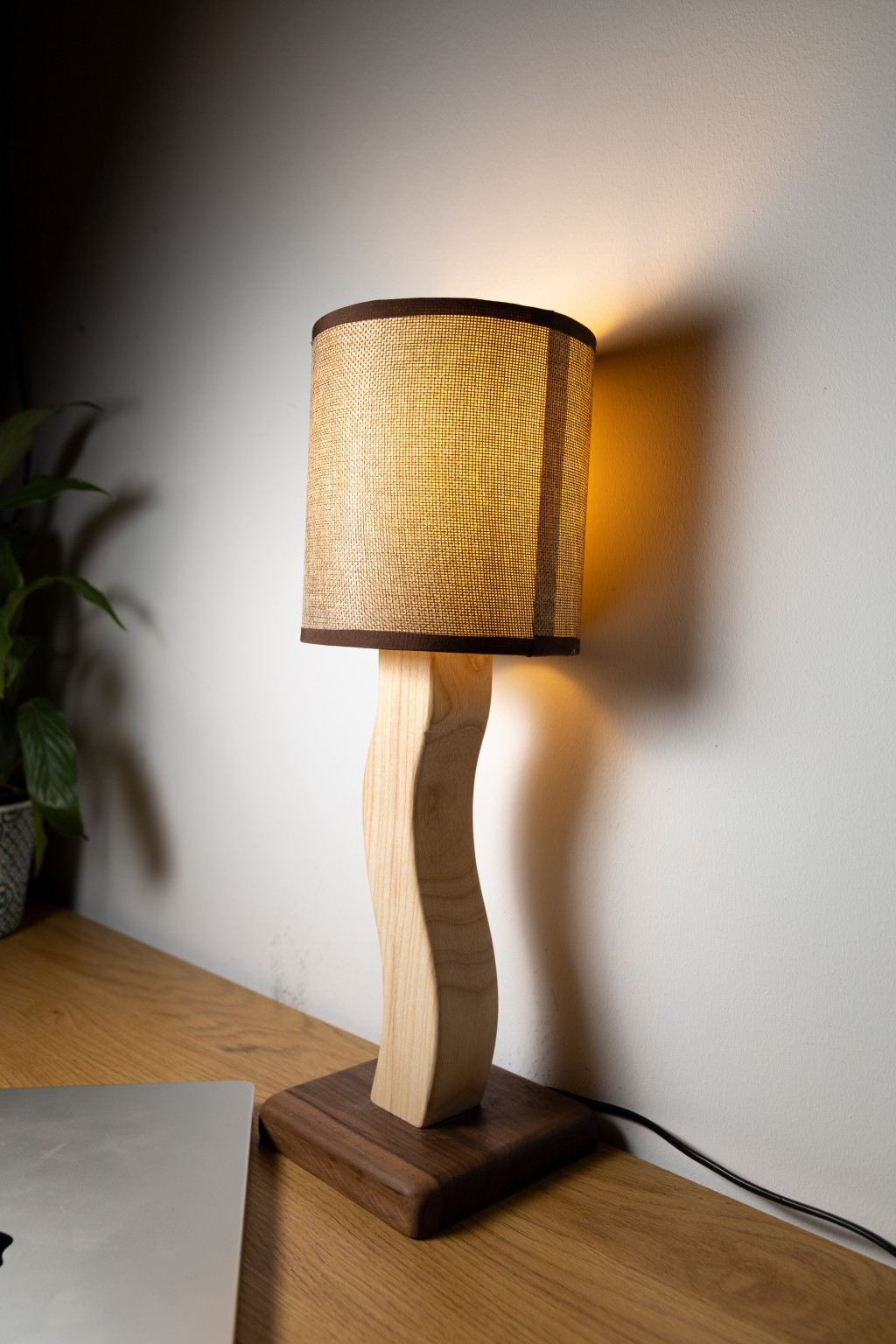 Visszafogott, ámde elegáns fain designos kislámpa, melyben a sötét amerikai dió s a világos kőris kontrasztja morfondíroztatja el tulajdonosát